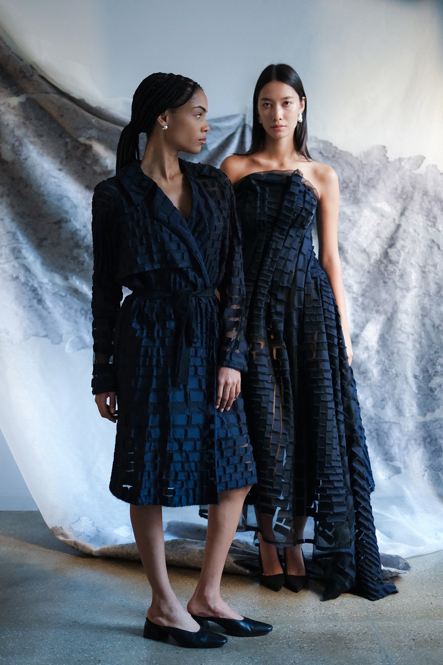 The Lucia Trench Coat is an exploration of form and texture. Exclusively developed and tailored in a richly woven fil coupé fabric, it brings subtle dimension to a classic silhouette. The slim fit with natural ease, balancing precision and softness. Clean lines and refined proportions highlight YEON’s quiet approach to structure — effortless, confident, and timeless. Designed to move gracefully with the wearer, it offers a modern sense of ease while maintaining architectural poise.