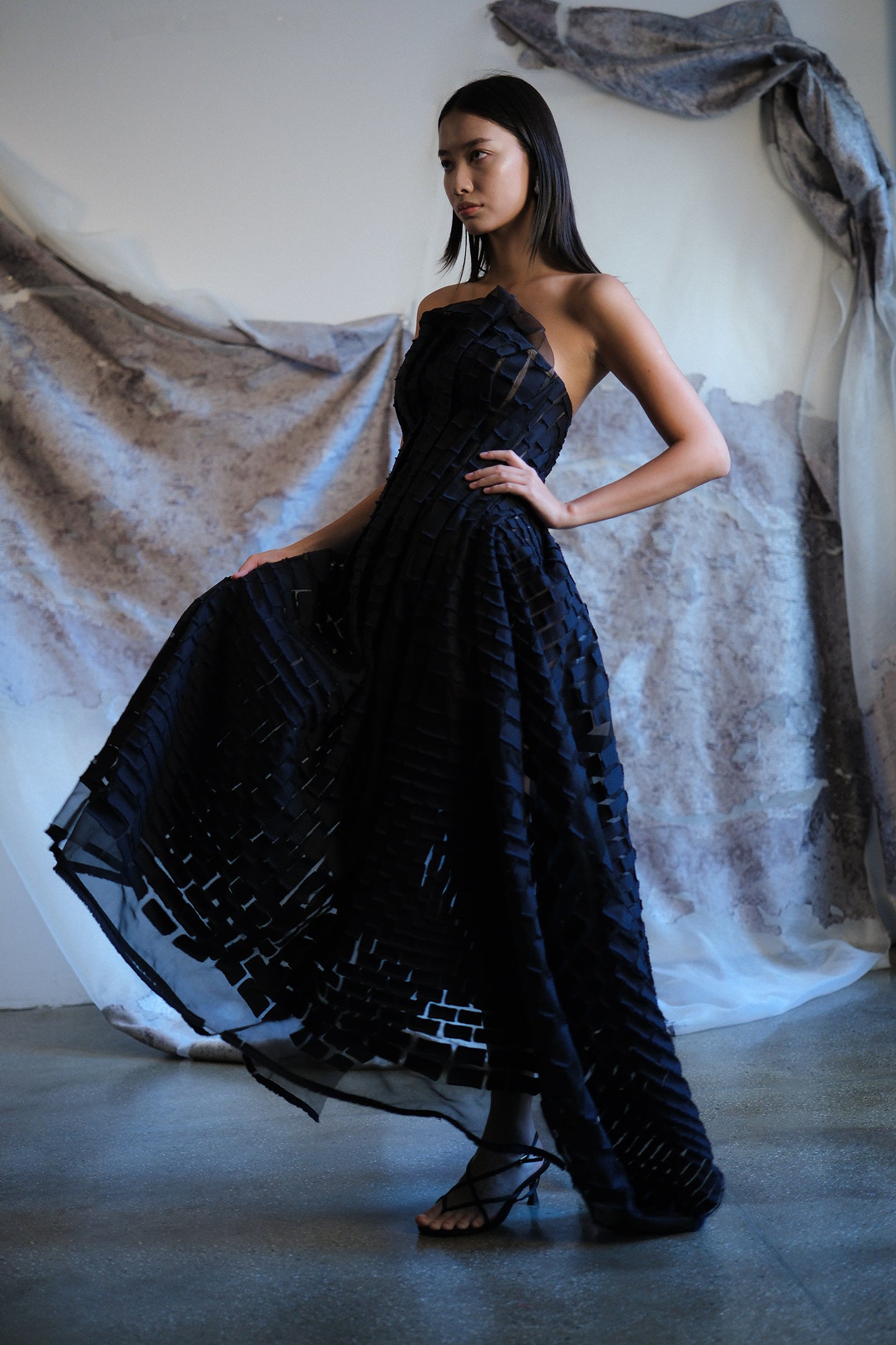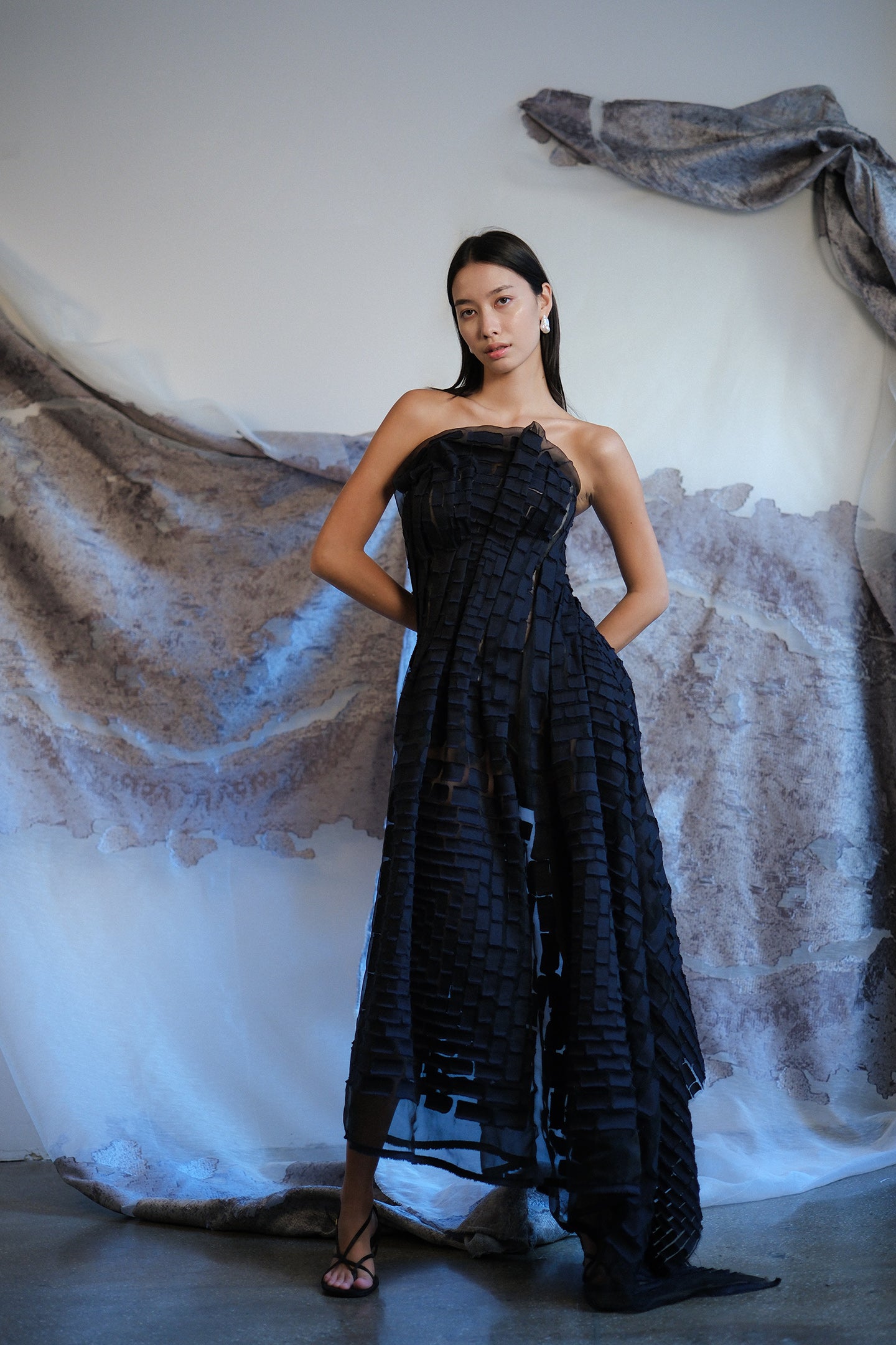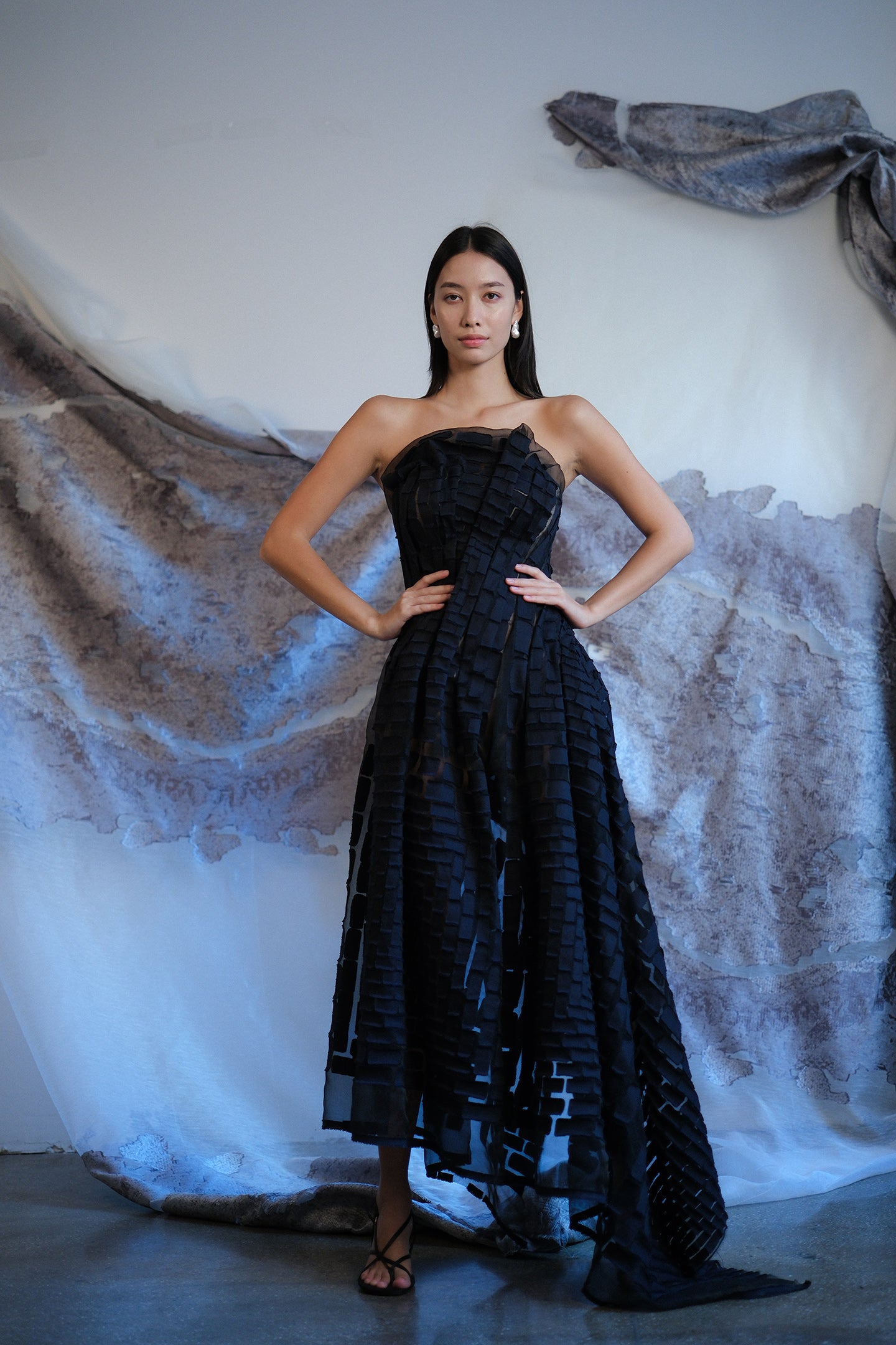 • Hand-draped and couture-sewn